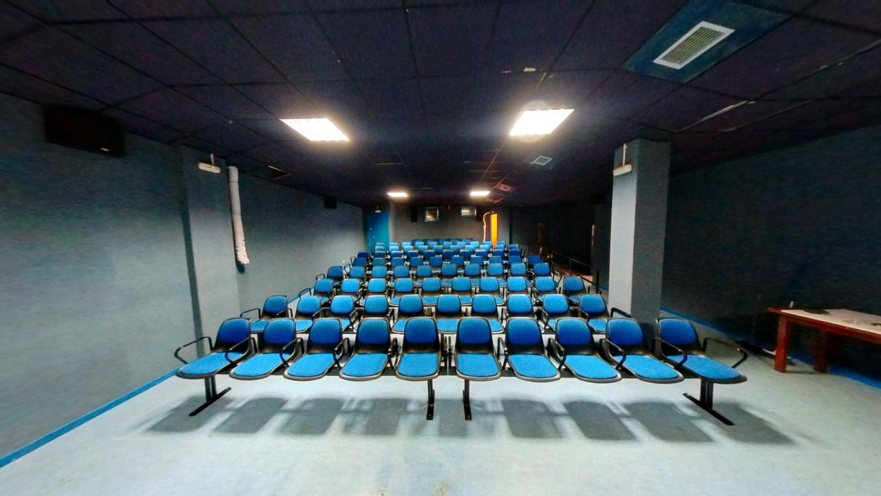 Ideal para presentaciones o conferencias, equipado con proyector y cien asientos para público.